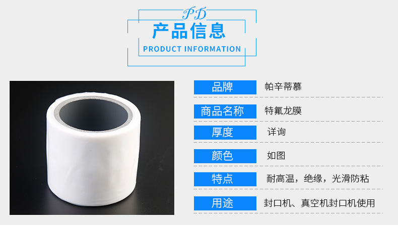 聚四氟乙烯薄膜又名特氟龍膜、鐵氟龍膜廣泛應(yīng)用于FPC柔性電路板、化工、石化、煉油、氯堿、制酸、磷肥、制藥、化纖、染化、焦化、煤氣、有機(jī)合成、有色冶煉、鋼鐵、原子能及高分子過(guò)濾材料、高純產(chǎn)品生產(chǎn)(如離子膜電解),粘稠物料輸送與操作,衛(wèi)生要求高度嚴(yán)格的食品、飲料等加工生產(chǎn)。